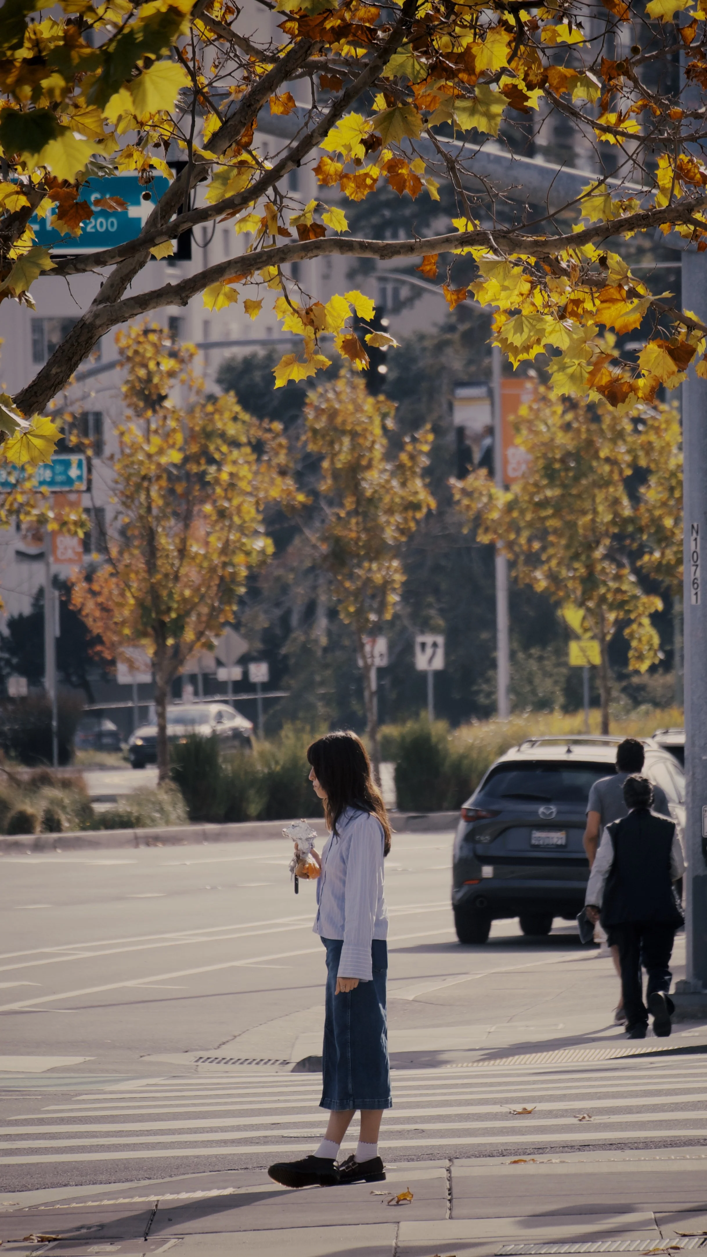 This moment presented itself with a peaceful confidence. A long wait under a colorful canopy, the sun perfectly backlighting her hair, and that specific, vibrant palette that only happens here for a few weeks. The three trees in the background texture the shot, burning like torches set alight.
